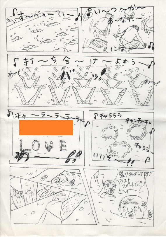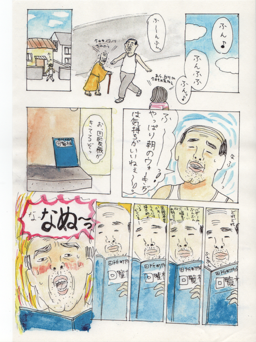 2013/02/01 Category : にっき 田所町内会まんが~アイドルが、俺らの町へやってきた!~ こんばんは~、昼前に腹に付けたホッカイロがまだあたたかい。約14時間。こんな小さいのに、驚異的な保温力!さて、今日は、昨日のひどい漫画の続きを恥ずかしげもなく公開したいと思います。こんなものを友人の誕生日に送りつけようとしていたなんてね…。しかも、20歳の誕生日に渡しそびれて、24歳の時もトライしようとしたっていうね…。そして結局渡せてないっていうね…。思えばこれがトーンデビューだった…!クリックすると大きくなります。オレンジ色のところには友人の名前が入ります。友人は主人公のおじさんたちが大好きなアイドルという設定です。絵の雑さがはんぱないですが、もし良かったら…。 あちゃ~。わたしは 田所 という響きが無性に好きでよく使います。町内会という狭いコミュニティ。ぼろい小さな公民館。いいですよね~。…この漫画をあげようとしていた友達に、いったい何歳の誕生日で渡すことができるのだろう…。10年経っても、まだまだ渡す気でいるわたしなのであった…。(気の毒な友人である)あ、だめだ、睡魔きた睡魔!おやすみなさい!ではまた~! [1回]