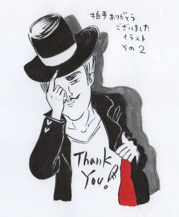 2012/09/30 Category : もんじゃらげ通信 祝!5000hit!!その2 どうもです~!!なんだか前回の5000hit記事にコメントたくさんありがとうございます!!完全につき合わせてしまった感が凄まじいですが、みなさんのノリの良さに感激いたしました…。(涙)拍手コメントをくださった方もいらっしゃって、本当にありがとうございました~!!ジャスティスに乾杯!脱毛…(笑)嬉しいです!今回は、今まで描いた拍手お礼イラストです!記事の下の拍手ボタンを押していただいたお礼に落書きですがイラストを表示させてもらってます。最近始めたばかりでまだ5までですが…よかったら見てやってください~!!そ~れ!こ、こんな感じでイラストが出ます…。押しても何もならないのですが…ただ嬉しいです~。これからもどんどん増やしていきたいです!拍手お礼イラスト内だけの漫画もおもしろそうだなあ~。10月は忙しい時期になり、ちょいと更新ペースが今より減るかもですが…よかったら、お暇な時間に遊びにきてくださいね~!只今漫画制作中~。はやく載せれるといいな~!ではでは!祝!5000hit企画でした~!!↑ランキング参加してます。余裕のあるときに応援よろしくおねがいします~ [4回]