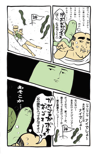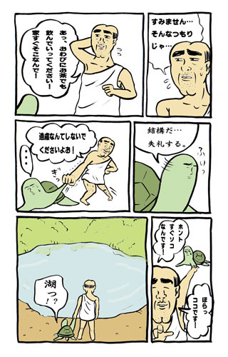 2008/08/27 Category : 漫画『湖の神様とカメ』(仮) 漫画『湖の神様とカメ』(仮) こんにちは〜!今日ももじゃもじゃ毛むくじゃら男です!今日は二人展用に作った漫画『湖の神様とカメ』(仮)を載せたいと思います!!では、よろしくお願いします〜!!12345678910つづく…いかがでしたか!?個人的に6の最後のコマと、7の3コマ目がお気に入りです。(照)この漫画は湖シリーズとして連載していきまーす!もう少しで『AIR OUT』という漫画が出来上がるので、近日載せれると思います!!よかったらまた見にきてくださいね〜!!人気ブログランキングへ↑押していただけると、いとうれし…です [0回]