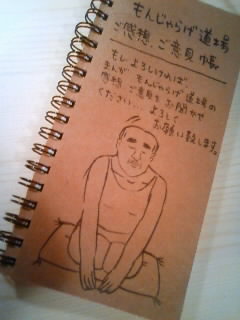 2008/09/04 Category : にっき 二人展"hissori"ありがとうございました〜!! お久しぶりでございます!!いろいろな予定が一段落したので、またいろいろ載せて行きたいとおもいますっ!!遅れましたが、二人展"hissori"無事終了しました〜!!奇抜な表紙の漫画をお手に取ってくださった皆さん、くだらないおっさん漫画を最後まで読んでくださった皆さん、そしてさらに感想ノートに感想を書いてくださった皆さん、一緒に二人展をしてくれた岡本氏、cafe doudouオーナーさん、本当にありがとうございました〜〜〜〜〜っ!!!感想ノートには、暖かいお言葉をたくさん書いていただき、さらにやる気がでましたーっ!!(出ちまいました〜)これからも、おっさんもりもり盛り沢山でやっていきたいと思います!冬、また何かできたらいいなぁと思います!そのときはよろしくお願いします!!ありがとうございました!! [0回]