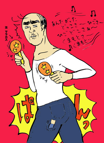 2008/09/23 Category : にっき ジーパーーーーンッ!!! おひさしぶりです!!おひさしぶり大根です!!(好物)おひさしブリリアントグリーンでーーーーーす!!!(懐かC〜!!)ふ…(疲)いやはや、またやっちまいましたよ…やっちまったつーか、なんつーか…Gパーン破裂しました、4回目ですよ…。私の下半身は非常に太いもので、頑丈なGパーンさえも破裂させます…。破裂なんて、んな大袈裟な〜!とお思いでしょうが、ビリビリ… とじわじわ破れるのではなく、パンッ! と、え?なになに!?小さな爆発!?と思えるくらい威勢のイイ音を出して破裂させるのです…。愛用のGパーン…一枚しかないGパーン…最近洗濯したてでも、キツくなりすぎなくなってきたGパーン…股の付け根が破れたGパーン…さよならなんて言わないよGパーン…だってまだ履くからGパーン…これからもよろしくねGパーン…一件落着。職場の主婦さんに、穴が開いたんです。といって見せたら、「アップリケつければ!?ちょっと前なら子供に買ったアップリケがあったのに〜!ピカチュウの!」って言ってくださったんですが…、大の大人が股ぐらにピカチュウのアップリケなんて付けてもいいんでしょうか…?あ、でも、ピカチュウって黄色と黒で、工事中の看板っぽいから『只今股ぐら工事中』的なのが伝わっていいかもっ!!ピカチュウもたまらず「クサチュ〜」とか言ったりして…!!わ!イイ!イイ!楽しい!楽しい!!(※当道場ツッコミ不在)今回を含む2回は股ぐらが破裂、一回はモモの外側が破裂したのですが、残りの一回は、忘れもしない…イキナリですが【☆思い出のGパーン破裂名場☆】なんと尻の下が正方形に破裂。学生の頃の合宿中に起きたので、履き替える事もできず、スリリングな時を過ごしました。(※イラストはイメージです。決してマラカス部だったワケではありません。たとえマラカス部だったとしても、「あんたがたどこさ」は選曲しません。)そんなこんなで、呪われた下半身をどうにかしなければいかんですな!!ぬっぬっぬっ。そして、今年中にはもう一枚Gパーン買いたいなあ…。ちなみに、Gパンや短パンを、Gパーン、短パーンと言うのがマイブームです。(どおでもいい)ではまた〜〜〜!!人気ブログランキングへ↑「Gパーン」の発音は、「パンテーン」の発音と一緒です。↑押して〜 引いて〜 押して〜 引いて〜(by おかあさんといっしょの体操のお姉さん) [0回]
